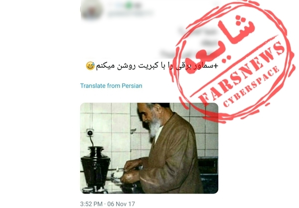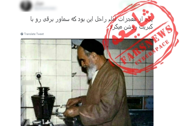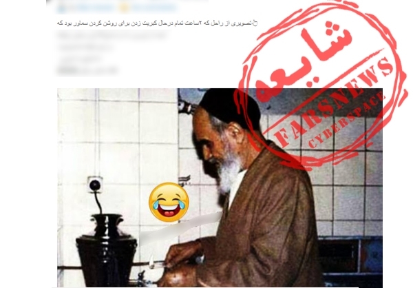 با نزدیک شدن به 14 خردادماه، سالگرد امام راحل(ره) برخی از صفحات منافقین و تعدادی از کاربران توئیتر عکس زیر را منتشر و ادعا کردند که امام در حال روشن کردن سماور برقی با کبریت هستند.