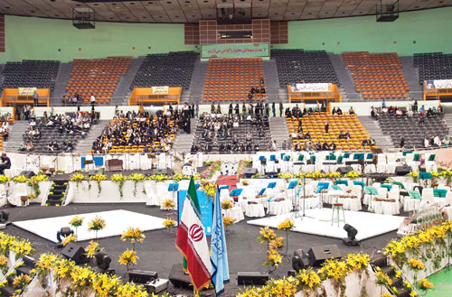 در بیرون سالن و در پارکینگ محوطه مجموعه، ماشینهای با پلاک دولتی و با نمرههای شهرهای مختلف کشور دیده میشد. در گوشهای دیگر هم اتوبوسهایی که حاضران را از گوشهوکنار تهران و برخی شهرهای دیگر به مجموعه فرهنگی ورزشی آزادی آورده بود، ردیف ایستاده بود. با این همه اما سالن خالی بود؛ درست به همان اندازه که 29 فروردین ورزشگاه خالی ماند. در سال 92 این دومین برنامه عمومی دولتیها در تهران است که با استقبال اندک مخاطبان مواجه میشود.